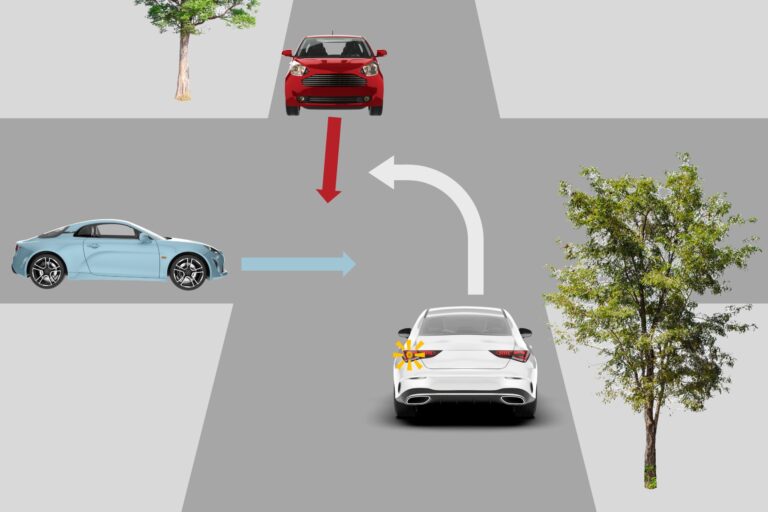 Nur eine Kreuzung, drei Autos und eine grosse Portion Verwirrung. Wer fährt denn nun?